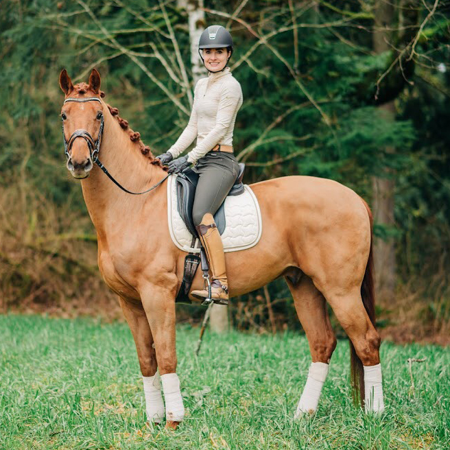 Claire began riding at the age of 2 and was riding dressage movements on her pony, Daisy, at the same time she was learning to read and write. Earning her Bronze Medal at age 13 and her Silver Medal at age 15, Claire has successfully competed several horses at the FEI levels. In 2016, she earned her Gold Medal and Gold Freestyle Bar on her own Calimar, whom she has owned since he was a yearling. Claire’s primary competition horse, Harrold S, was named 2017 USDF Horse of the Year at Training Level and Materiale with median scores over 82%, in addition to Reserve Champion at First Level with a median score over 79%. In 2018, the pair were invited to the USEF Development Program and also travelled to the Pacific Regional Dressage Championships in British Columbia, where they won the Foreign Rider Championship with scores to 75% at Third Level. This year, they are competing at Fourth Level, earning High Point Champion awards with scores to 77%.