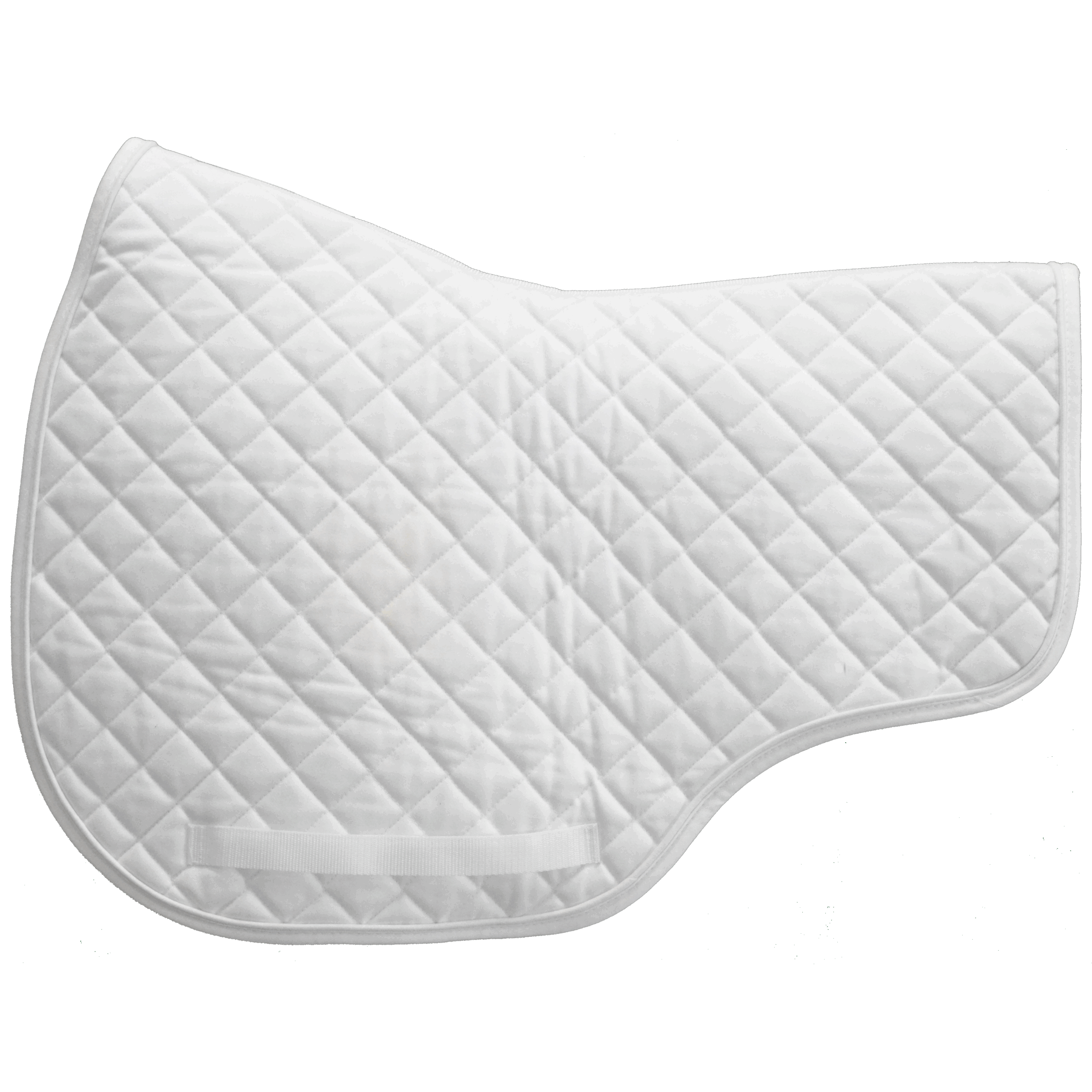 High quality thin quilted cotton pad with wither relief and girth loops to secure saddle pad and prevent slippage during your ride. Available in white only.